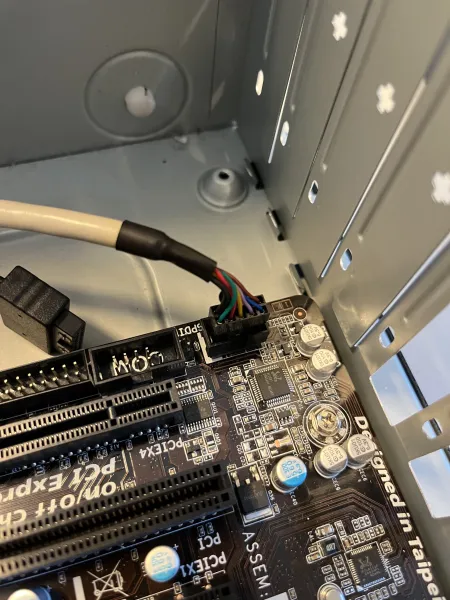 Etterpå skal du koble til AUDIO koblingen, som er vanlegvis oppe i hovudkortet.