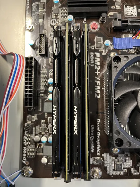 No når du er heilt ferdig inn i pcen, lukker du casen din. Alle har ulik case så den kan hende at du må skru på casen, men eg måtte berre ta det på med klippser. Etterpå skjekker du om pcen din funker.