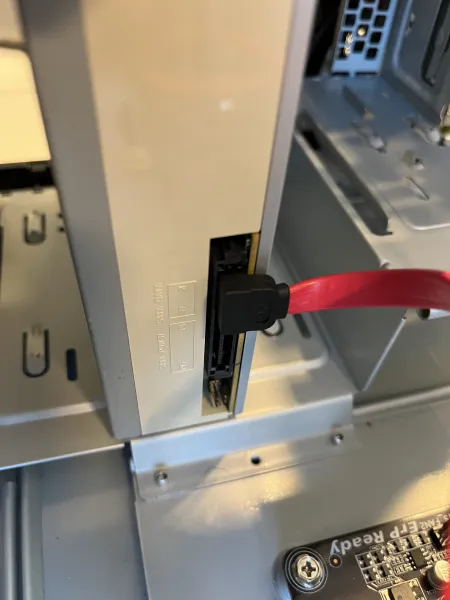 No skal du koble til alle SATA koblingane du har, i mitt tillfall så var det SATA koblinger i harddisken og i DVD disken. Så skal du og koble den andre enden av SATA koblingen på hovudkortet opp i venstre hjørnet til SATA koblingen.