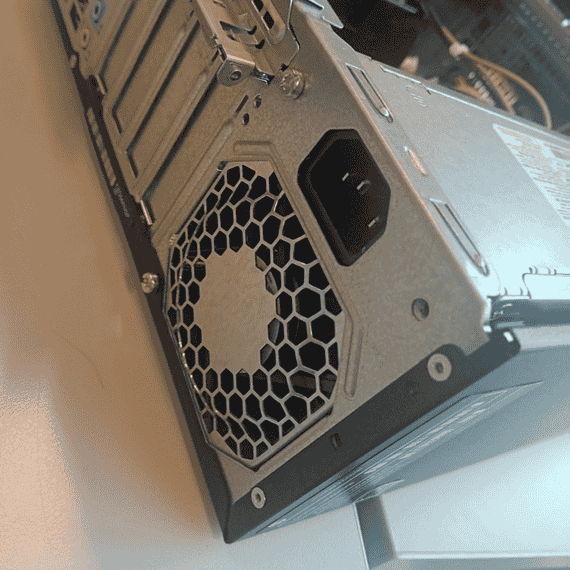 Her ser du strømforsyningen. strømforsyningen "PSU" er en komponent som konverterer strøm til en brukbar mengde for komponentene.